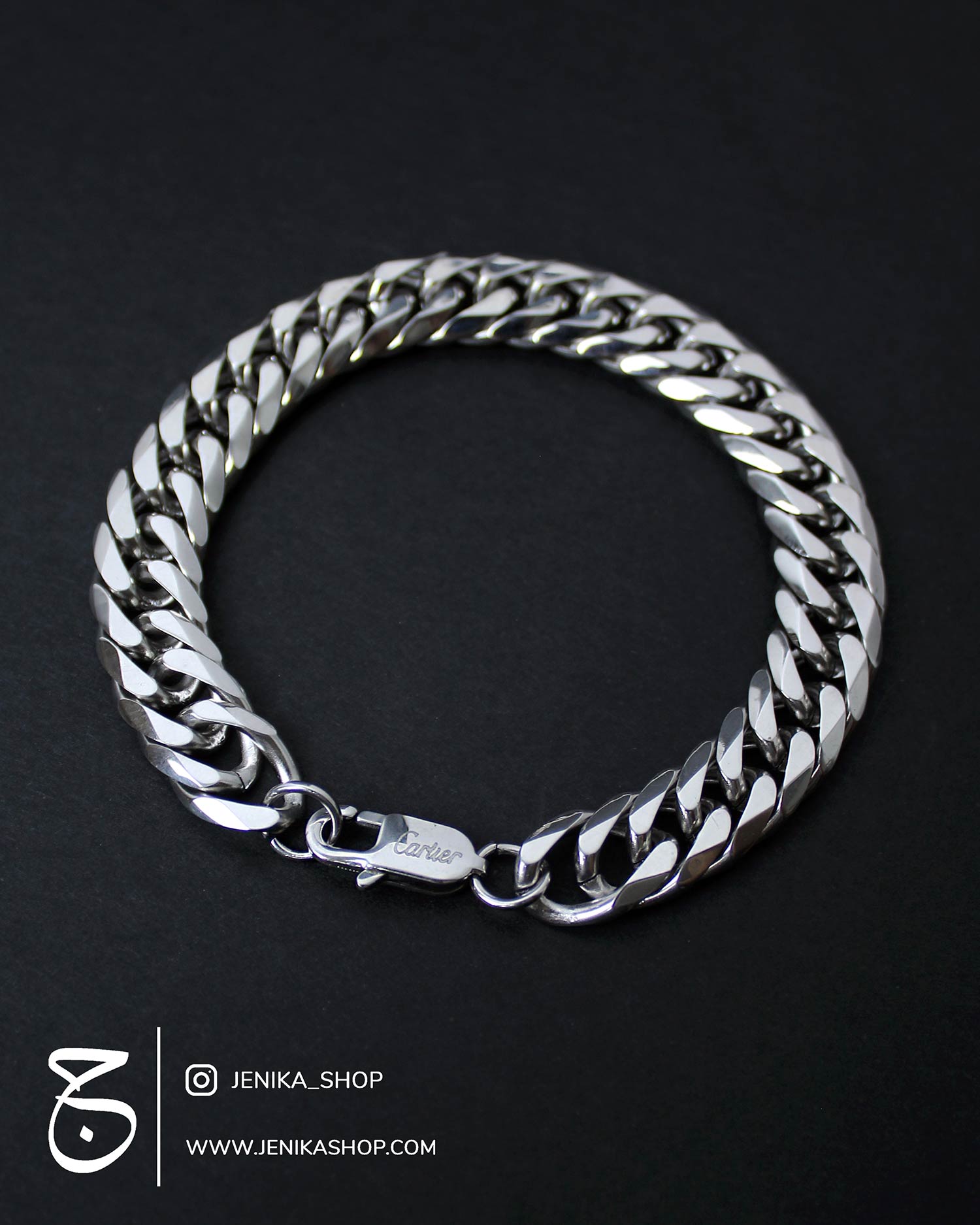 دستبند استیل مردانه کارتیه با طول 21 سانت و قابلیت تغییر سایز و کوچک کردن کار به همراه قفل بسیار شیک و با کیفیت