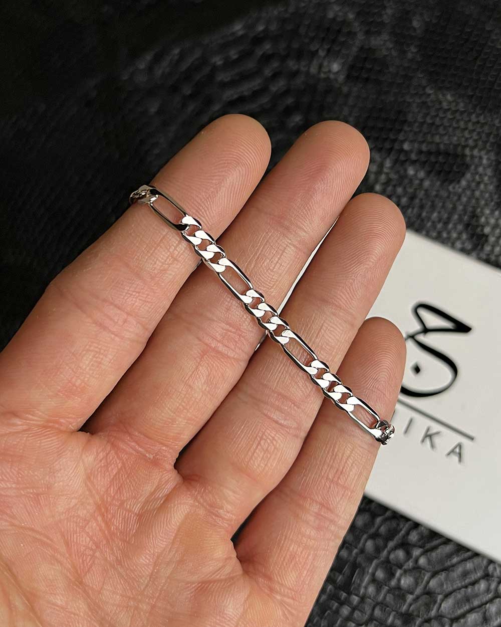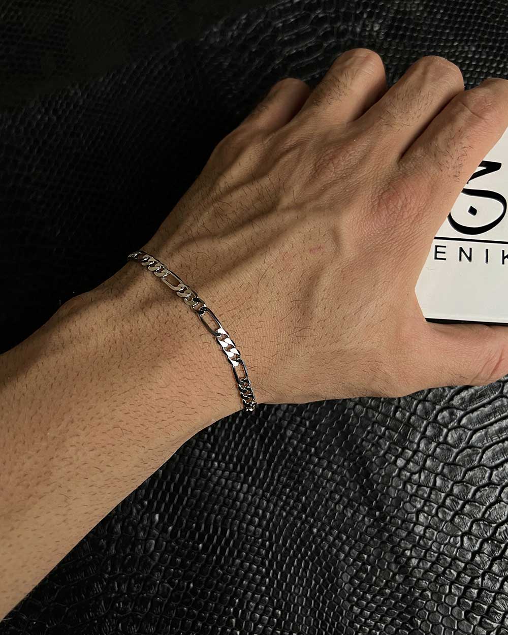 دستبند نقره مردانه مدل فیگارو جنیکا یکی از محبوبترین و کلاسیکترین مدلهای زنجیری است که همیشه در استایل مردانه جایگاه ویژهای دارد. این دستبند با طراحی مشهور فیگارو – ترکیب سه حلقه کوتاه و یک حلقه بلند – ساخته شده و ظاهری شیک، مردانه و ماندگار ایجاد میکند. استفاده از نقره با عیار ۹۲۵ باعث شده این مدل هم درخشش چشمگیری داشته باشد و هم در برابر کدر شدن مقاومت بسیار خوبی ارائه دهد. اگر دنبال یک دستبند نقره هستید که هم برای استفاده روزانه مناسب باشد و هم برای استایل رسمی، فیگارو همیشه یک انتخاب بیرقیب است.