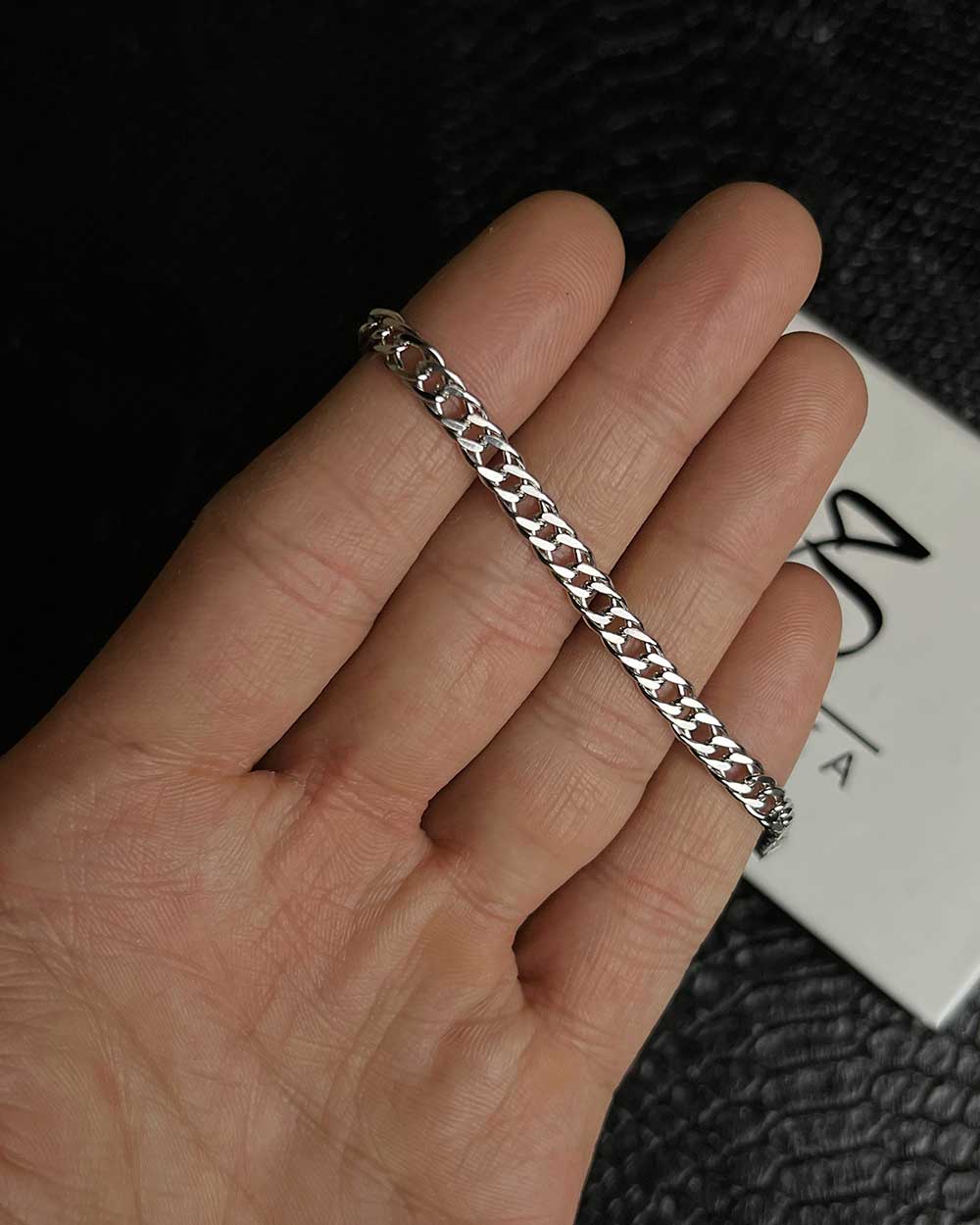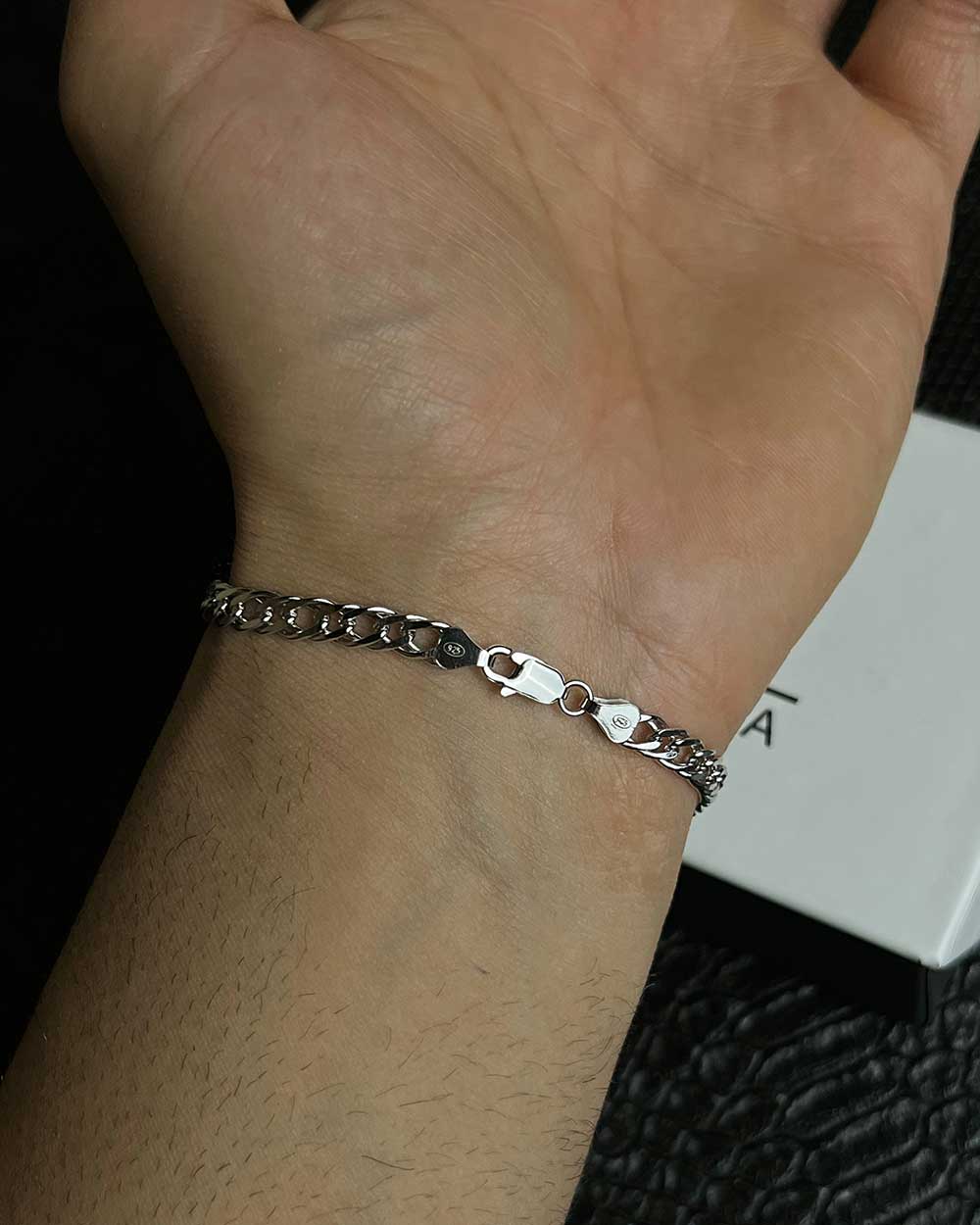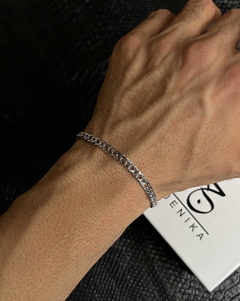 این دستبند نقره مردانه با طراحی ظریف و جذاب، یکی از گزینههای ایدهآل برای آقایانی است که به دنبال استایلی شیک، مینیمال و در عین حال باکیفیت هستند. این مدل با زنجیر طرح کارتیه و درخشش چشمگیر خود، بهراحتی روی دست مینشیند و ظاهر آن در عکس محصول بهخوبی نشان میدهد که چگونه میتواند استایل روزمره یا رسمی شما را ارتقا دهد.