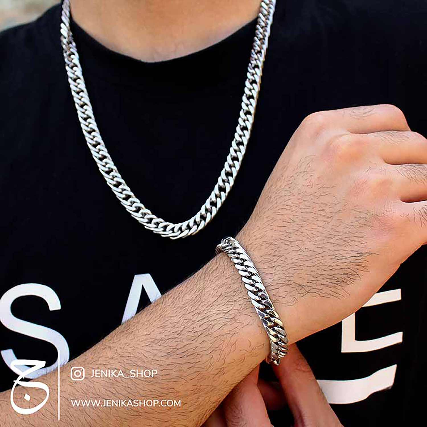 ست دستبند و گردنبند کارتیه نقره ای رنگ این محصول یکی از سری کار های کارتیه هست، زنجیر های کارتیه با بافت خاص خودش تونسته طرفدارای زیادی پیدا کند. این مدل دستبند ها با همه استایل ها و لباس ها به راحتی ست می شود، به دلیل ساده بودن با سلیقه خیلی ها جور می باشد و انتخاب مناسبی برای خرید کادو می باشد.