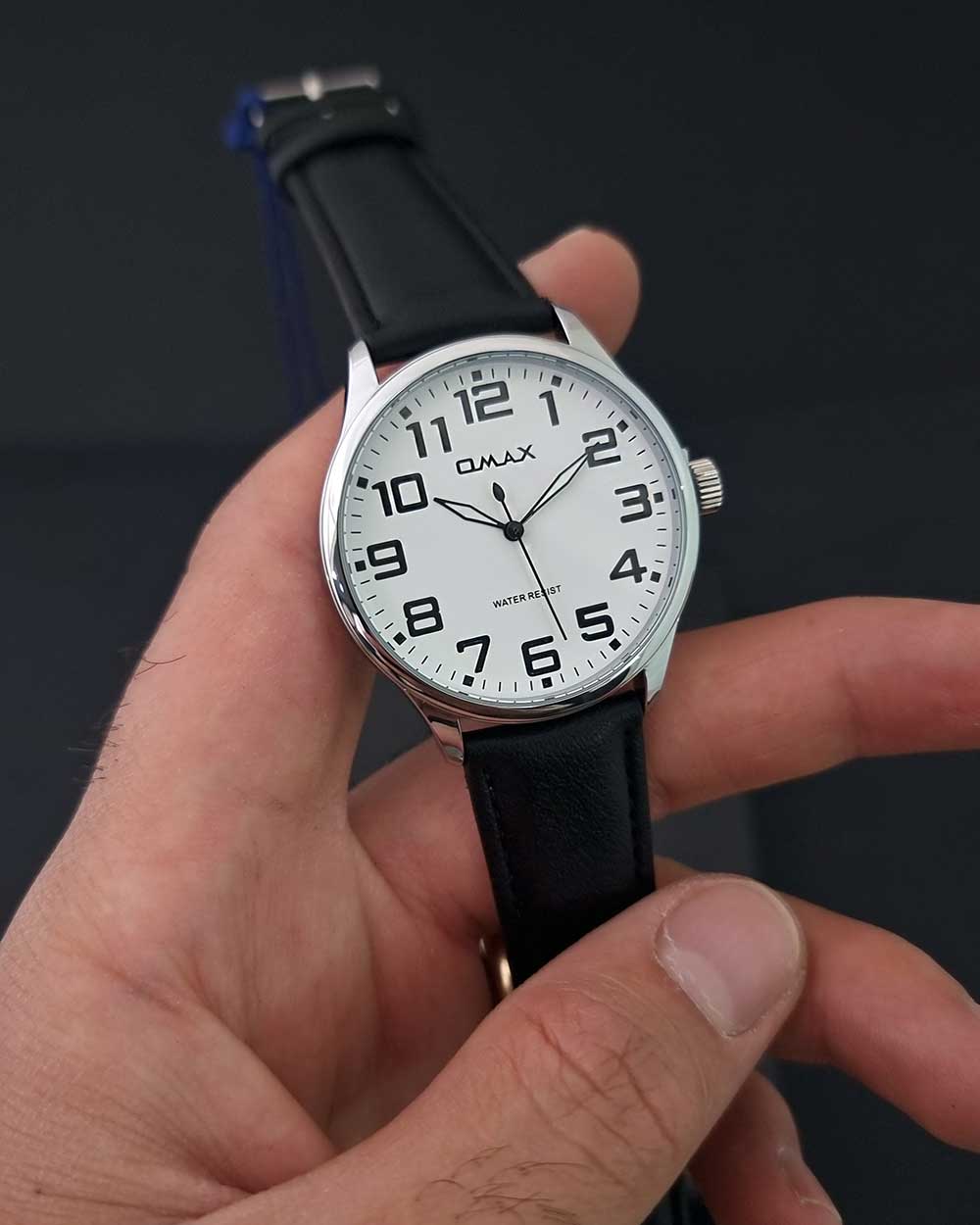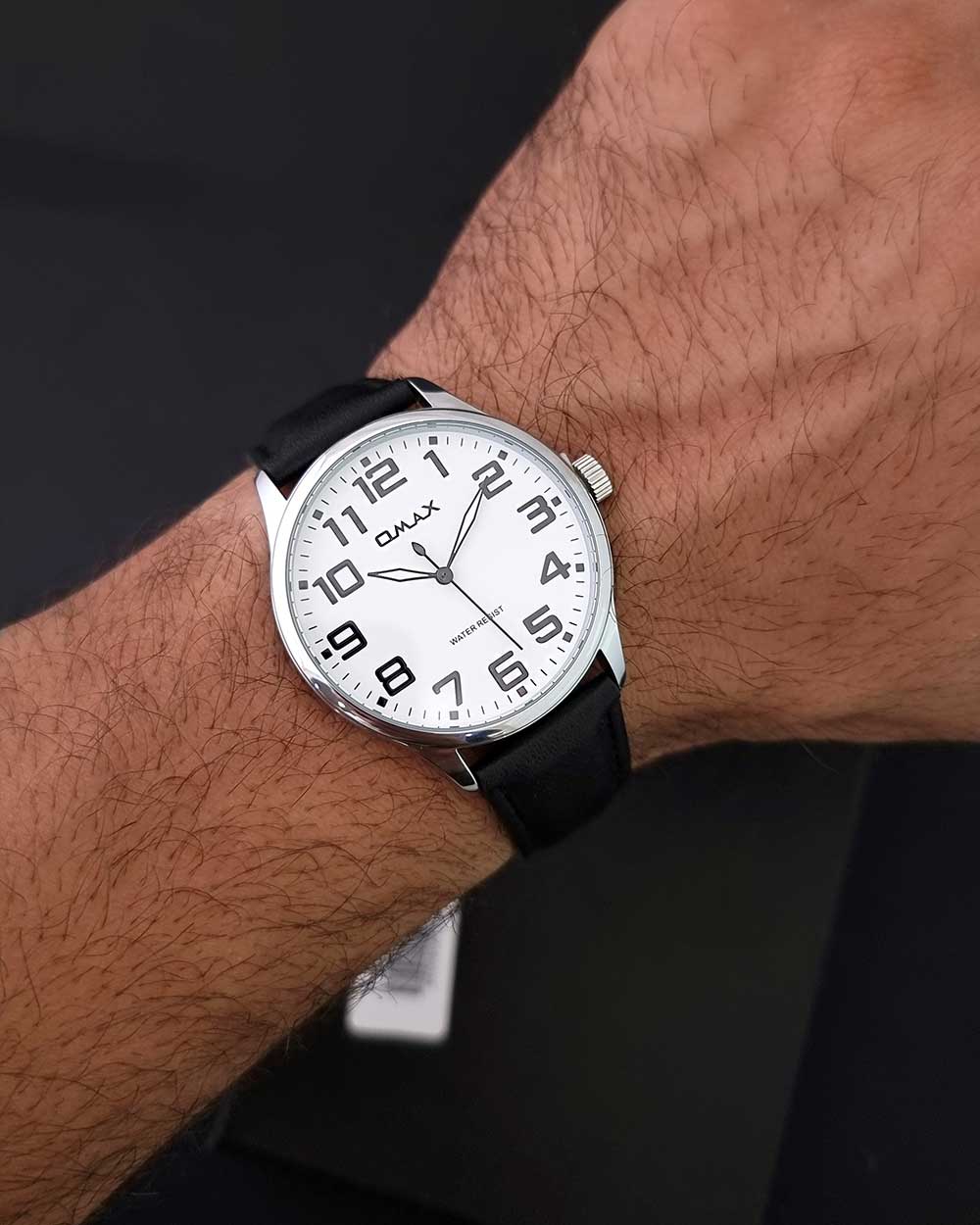 ساعت مردانه اوماکس OMAX چرم نقره ای