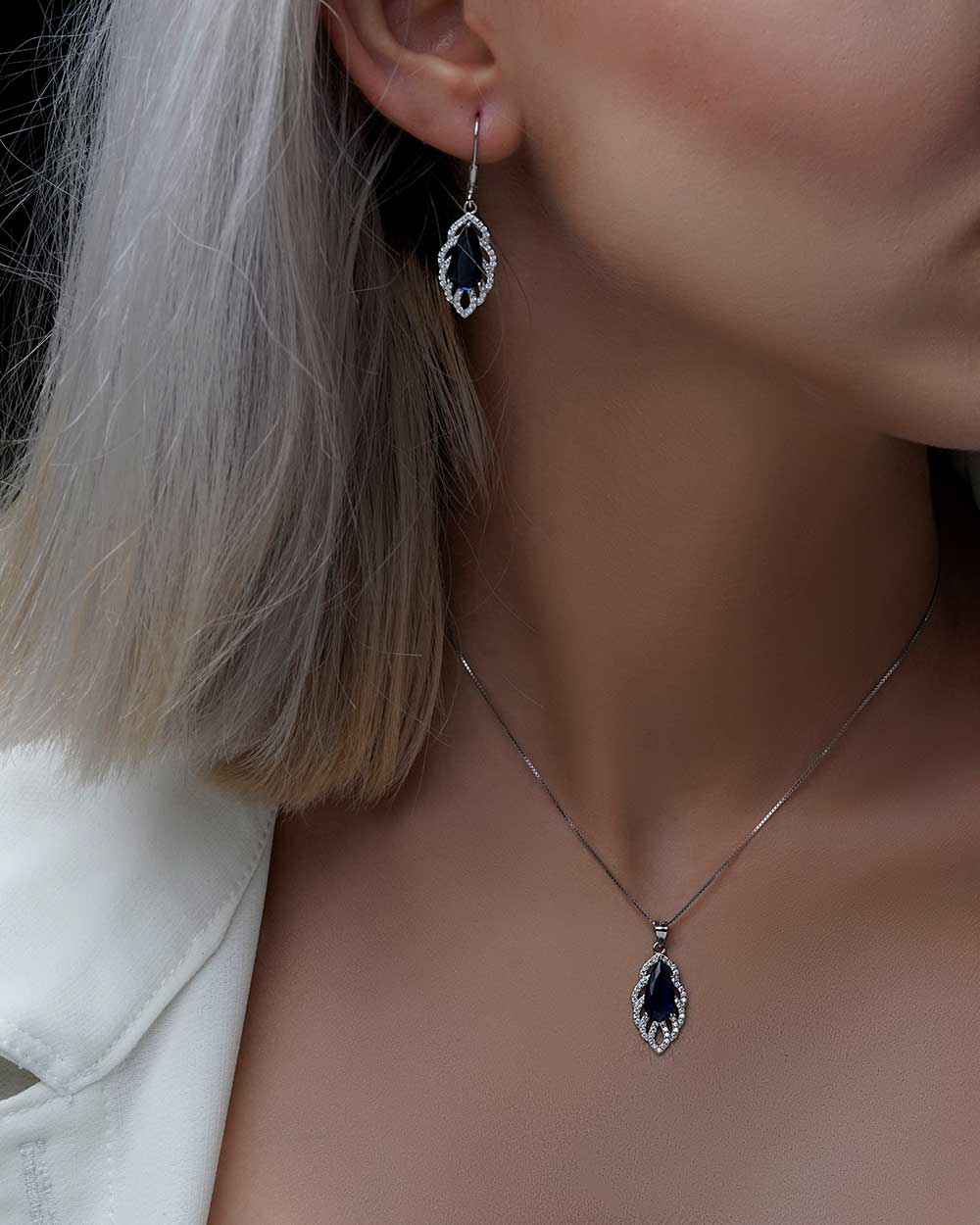 نیمست زنانه نقره طرح سواروسکی آبی با عیار 925