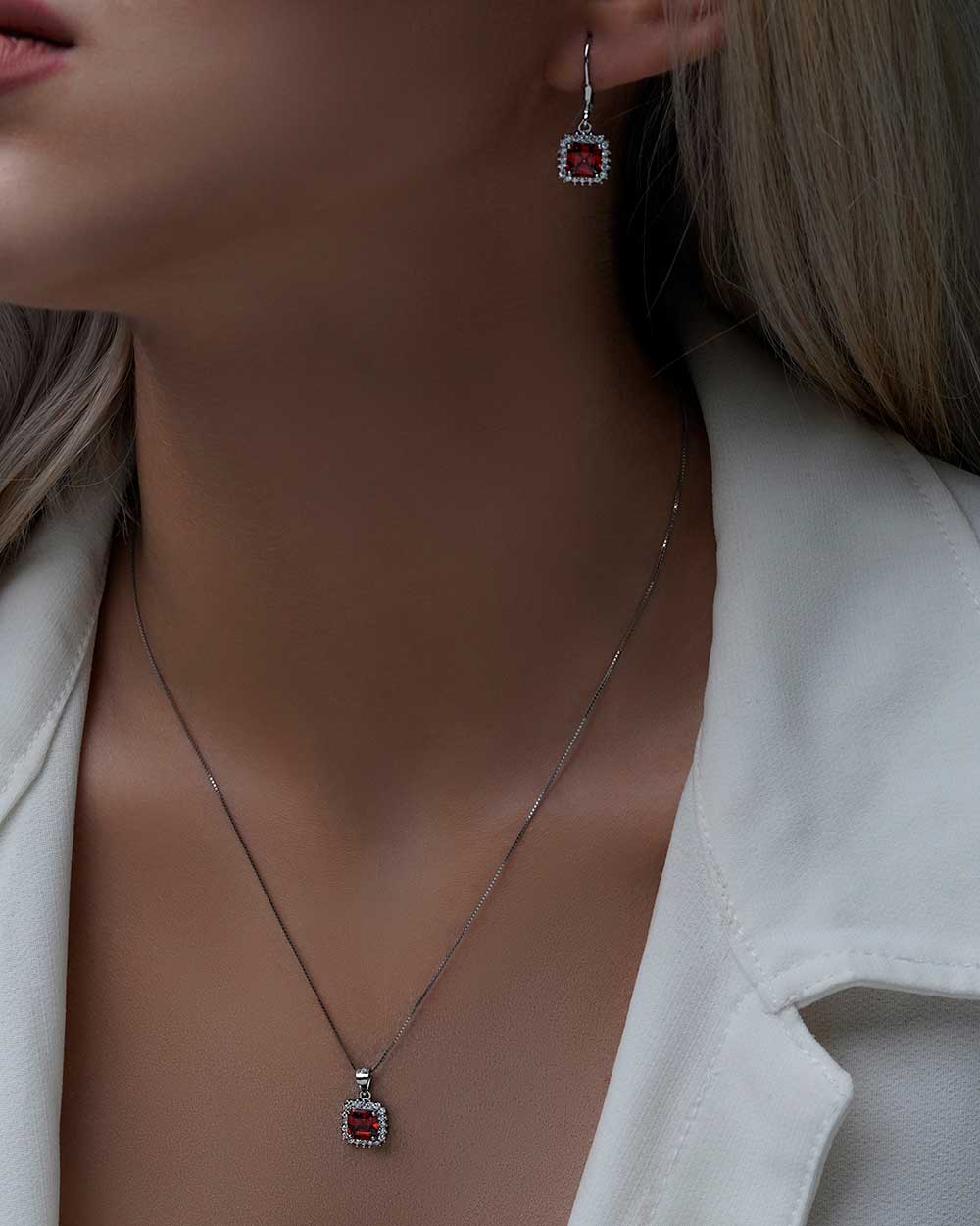 گردنبند به همراه جفت گوشواره دارای نگین قرمز رنگ