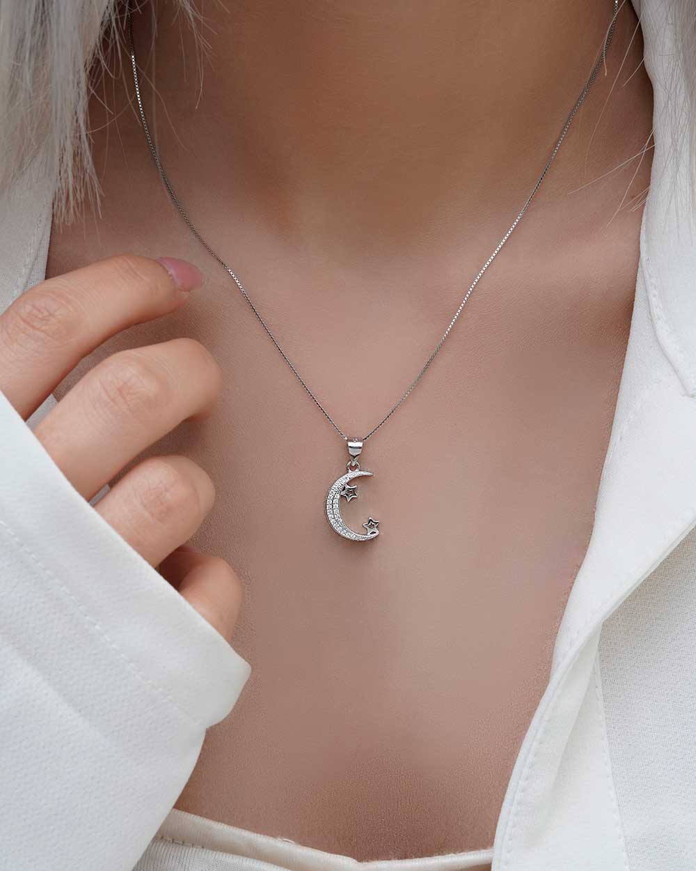 گردنبند زنانه نقره طرح ماه و ستاره